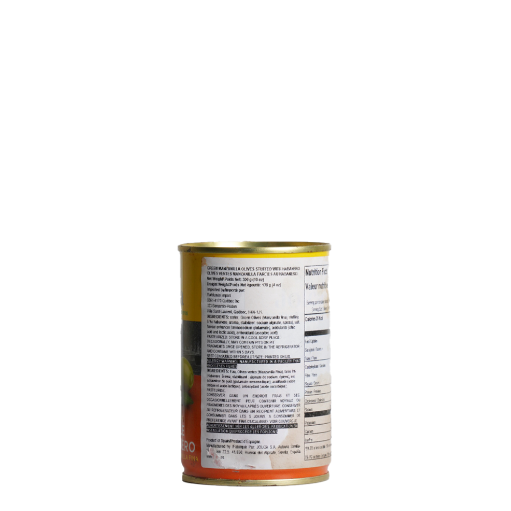 Habanero Chile Filled Olives by Jolca are spicy, zesty, and perfect for adding heat to cocktails or snacks.