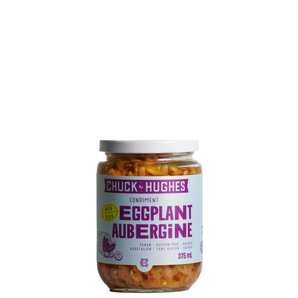 Chuck Hughes Mild Eggplant Condiment brings the smoky richness of eggplant without the heat — great for dips or pasta.