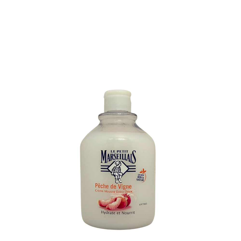 Extra Soft Mousse Cream with Vine Peach creates a rich lather with fruity, floral notes.