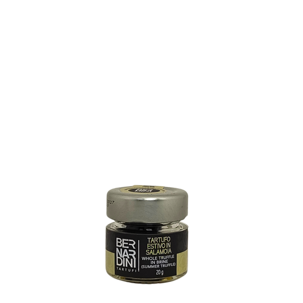 Whole summer truffles preserved in brine by Bernardini, offering an earthy aroma perfect for shaving over pasta and eggs.